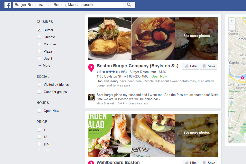 That’s right--Facebook actually has a local search feature! It’s not quite as expansive or impressive as Yelp or Google, but considering that it’s only been available for a year, it’s certainly worth looking into.