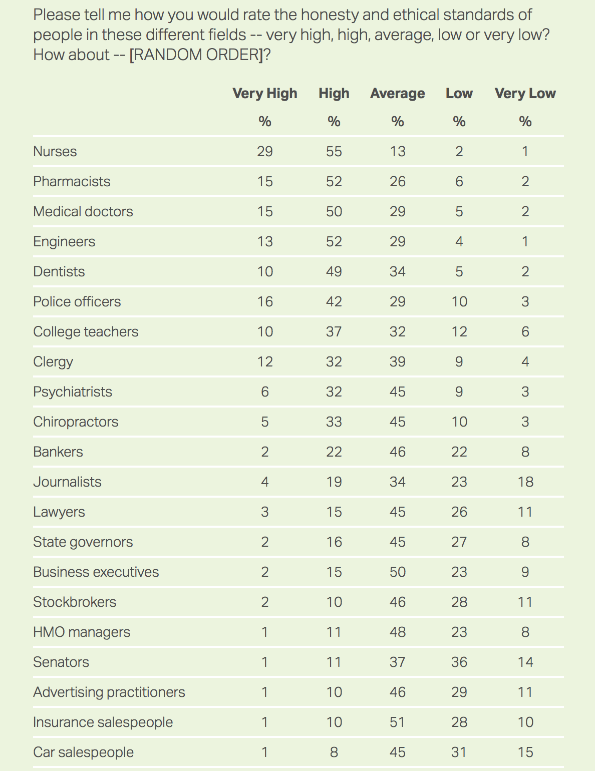 Salespeople and advertisers were near the bottom of the list.